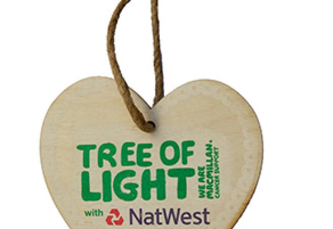 wooden eco bauble - Macmillan heart